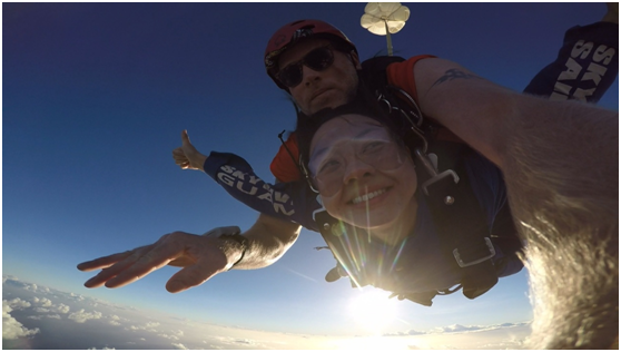塞班另外一个最值得强烈推荐的项目就是跳伞了,真是很奇妙的感觉,完全无法用言语或者图片、视频来形容,有机会一定要自己亲身体验那种感觉。跳伞的英文是SKYDIVE,空中潜水,也就是可以像鱼在水中自由自在游泳一样,在空中自由自在的飞翔。虽然跳伞的过程中,不能挣脱地心引力,会做自由落体运动,但张开双臂,自由自在的飞在空中,真的是别的活动无法替代的,以后有机会还得再去参加,这次也是突破了自己的心理障碍,突破了自我。
